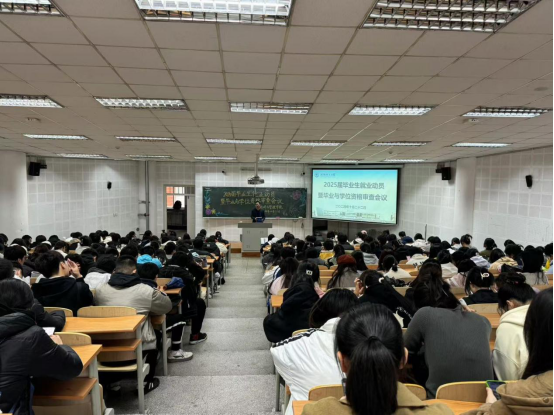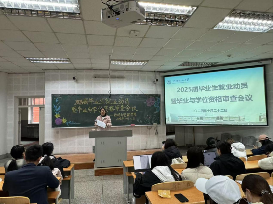 会上,孟丽老师围绕公司教务处关于确定2025届毕业生毕业与学位审查标准的通知,结合《bb贝博艾弗森官方网站教学培养方案》 、《bb贝博艾弗森官方网站学分制学籍管理办法》和《bb贝博艾弗森官方网站本科生学士学位授予工作有关规定》文件内容,向2025届本科生毕业生同学强调各专业的毕业条件与学位审查标准,并督促同学们利用网上办事大厅按时完成毕业与学位审查。