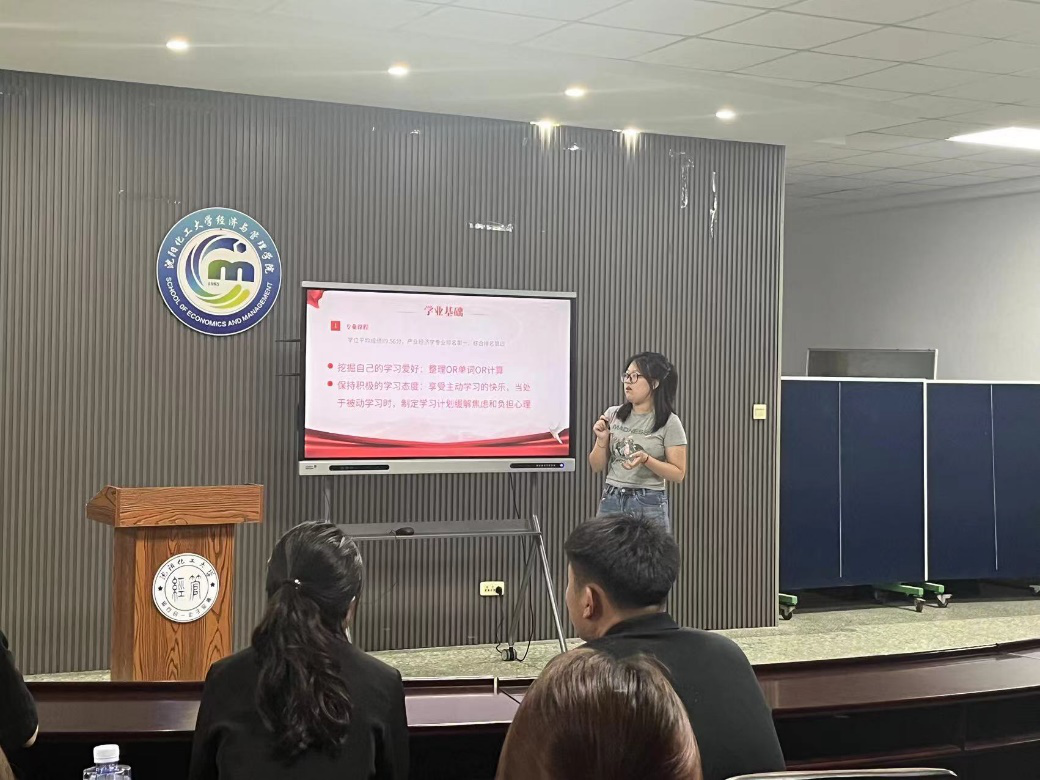 2022级产业经济学研究生纪鹤楠同学分别从科研历程、学术活动以及在校学习与工作经验等方面进行了分享,强调了保持学习热情的重要性,结合自己学习和志愿服务经验,鼓励同学们要积极参加课题项目、科研竞赛以及课外志愿活动,锻炼综合能力并在日常的学习和生活中善于发现自己。