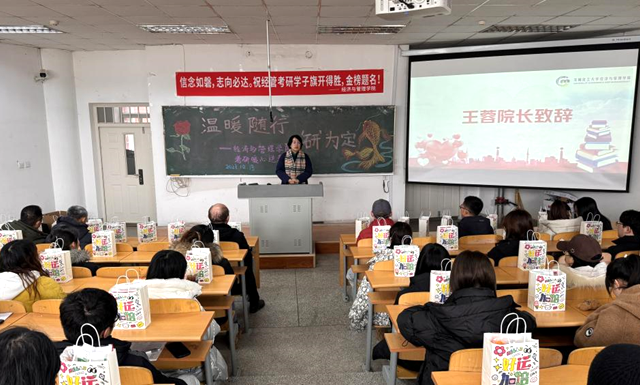 2024年考研征程已进入冲刺阶段,为鼓舞考研学子士气,增强考研信心,鼓励同学们在最后阶段做好充分准备,12月13日中午,经济与管理公司在瑞师楼118举办了考研暖心送考活动,为考研学子送上温暖祝福。公司领导班子及全体辅导员出席活动,本次活动由辅导员张国平老师主持。