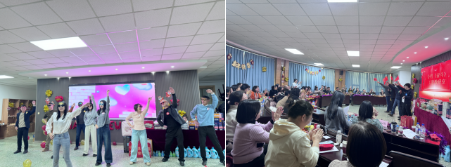 随后,联欢会在一段精心制作的开场视频和一系列暖场游戏中拉开序幕,迅速点燃了现场的热情。公司领导班子及学工办老师们以一段充满活力的舞蹈串烧开场,为联欢会注入了无限活力。各教研室精心准备的节目依次上演,包括舞蹈、歌曲、影视配音和三句半等多种形式,充分展示了教职工的多才多艺和积极向上的精神风貌,每个节目都洋溢着正能量,共同迎接新年的到来。