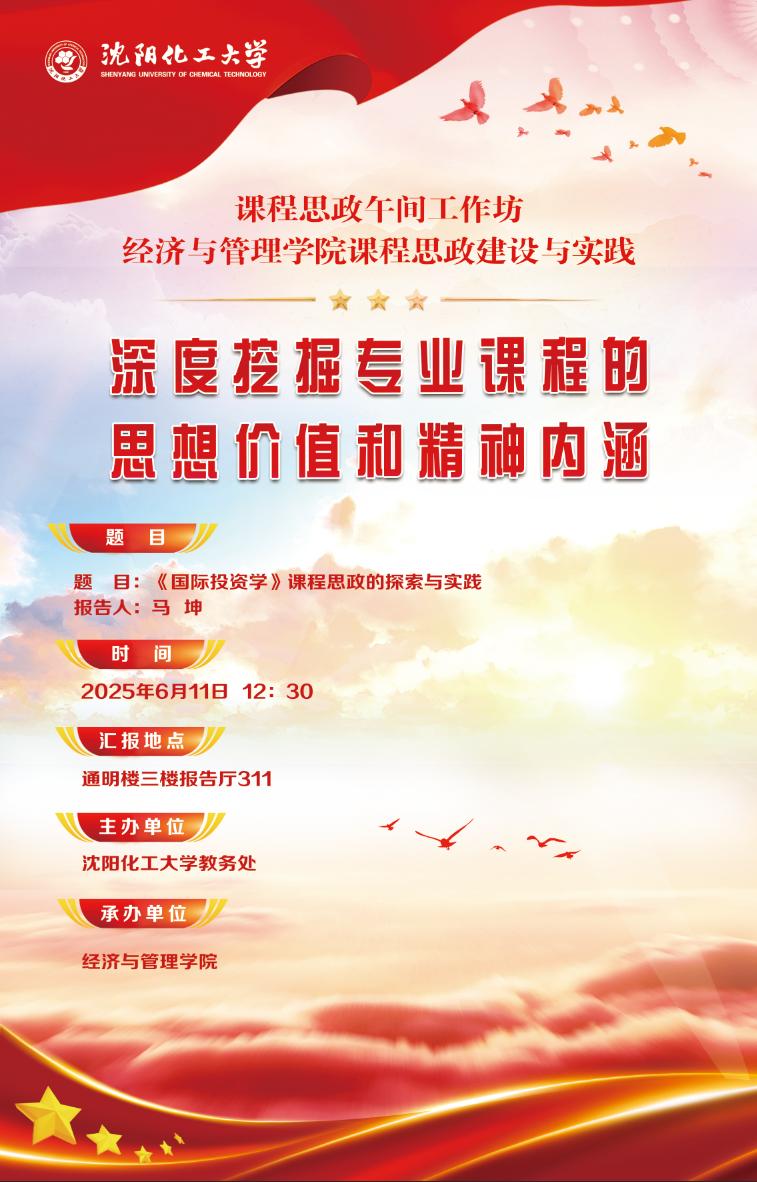 2025年6月11日,由BB贝博艾弗森官网承办的第五期课程思政午间工作坊在通明楼会议报告厅311室举行。本次工作坊的主讲人为国际经济与贸易教研室马坤老师。她在领会分析教育部《高等公司课程思政建设指导纲要》等重要文件精神的基础上,深入思考课程思政在高校专业课教学中协同育人、隐性教育管理和差异化融入等方面的特征属性和作用,结合《国际投资学》课程的授课实践探索经济与管理类专业课程思政的实施路径和实际效果,总结拓展课程思政的深度、广度和温度的创新方法,最后对于未来如何结合第二课堂、社会实践以及人工智能技术提升课程思政的水平提出自己的见解。