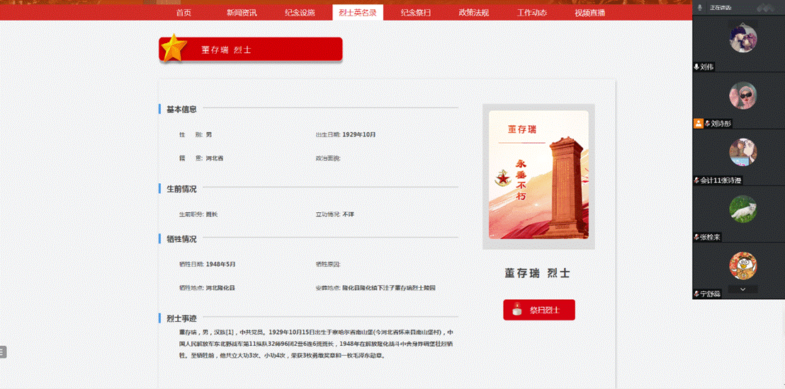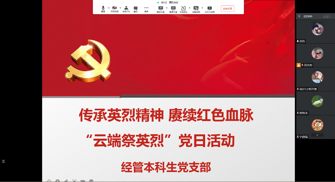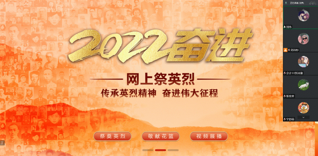为深入传承弘扬英烈事迹和精神,引导员工党员传承弘扬革命先烈的优秀品质,引领崇尚、缅怀、学习、捍卫英烈的风尚,经管本科生党支部于4月6日18:00通过线上党员大会形式开展以“传承英烈精神 赓续红色血脉”为主题的“云端祭英烈”党日活动。