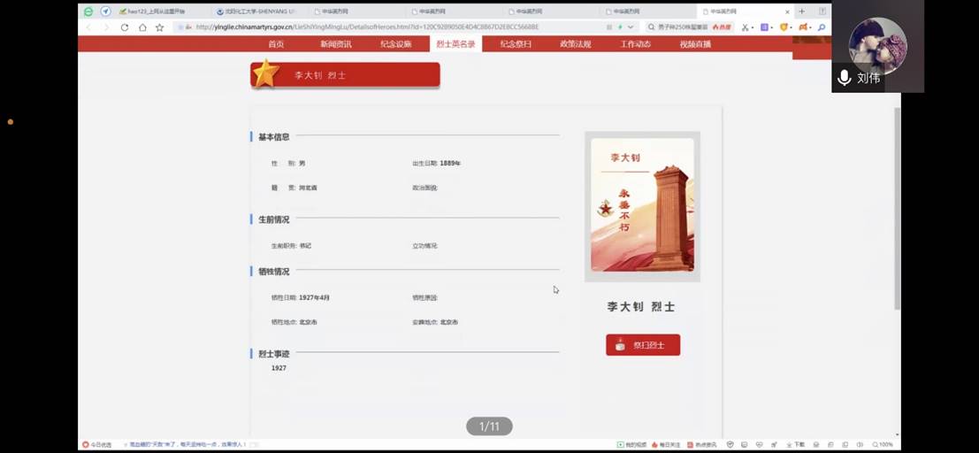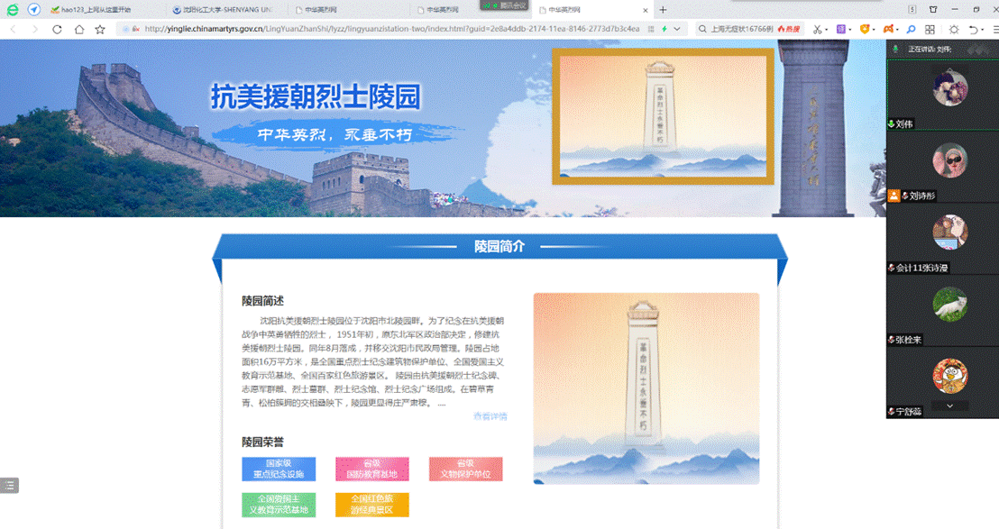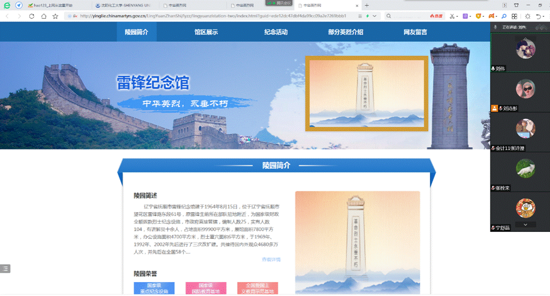 通过访问中华英烈网,带领支部党员了解烈士纪念设施地图,重点访问了辽宁省国家级和省级重点烈士纪念设施。党支部书记刘伟老师为全体党员详细介绍了抗美援朝烈士陵园、辽沈战役烈士陵园、雷锋纪念馆等爱国主义教育基地,叮嘱青年员工要铭记革命先烈的英雄事迹,弘扬爱国主义精神,多到爱国主义教育基地进行参观学习,为自己进行精神洗礼。