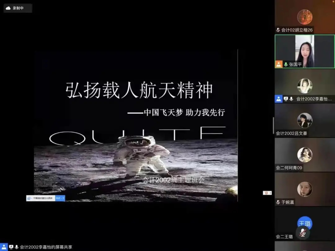 2020级以学习航天精神为主题,召开“你我共携手 共筑航天梦”主题班会,教育和引领员工要树立远大理想,激发学习动力,培养特别能吃苦、特别能战斗、特别能攻关、特别能奉献的精神。