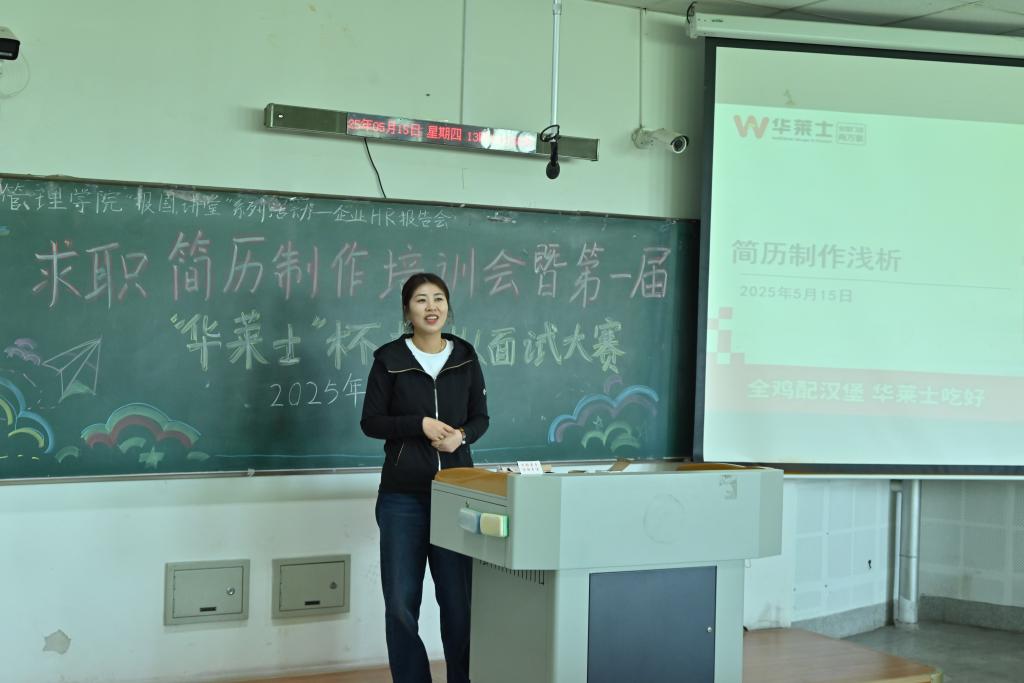 5月15日,BB贝博艾弗森官网在通明楼338室举办了“报国讲堂”老员工职业规划与就业指导主题讲座暨求职简历制作培训会。本次活动特邀上海华莱士贸易有限公司沈阳分公司人事主管姚琳女士担任主讲。2022级本科生、2023级研究生参加讲座,本次活动由公司分团委书记王怀主持。